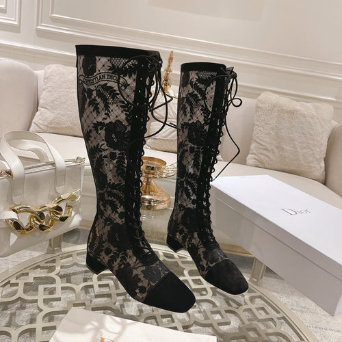 IVORY KNEE-HIGH LEATHER BOOTS WITH BLACK CAP TOE AND BLOCK HEEL IVORY KNEE-HIGH LEATHER BOOTS WITH BLACK CAP TOE AND BLOCK HEEL